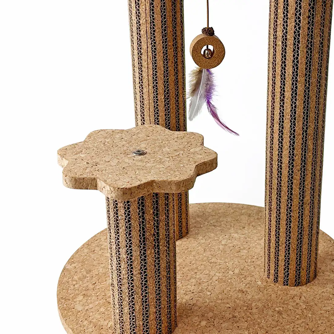 Our cat scratch tree is made from natural cork and corrugated paper, ensuring a sturdy yet comfortable scratching experience for your feline friends. Its durable structure helps maintain your cat’s claws, promotes healthy exercise, and protects furniture from damage. Additionally, the eco-friendly materials used make this product a top choice for those with a focus on sustainability.