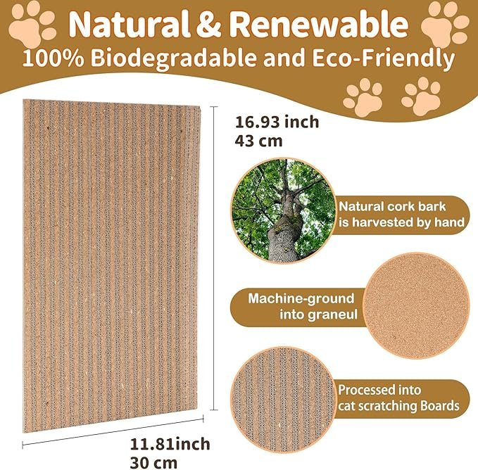 Our cork material contains over 30% more binding agents than most competitors' products. This means better durability and less debris when your cat uses it. The high-purity cork particles create an ideal texture that cats naturally love to scratch. Your pet will enjoy the authentic feel while you enjoy the peace of mind.