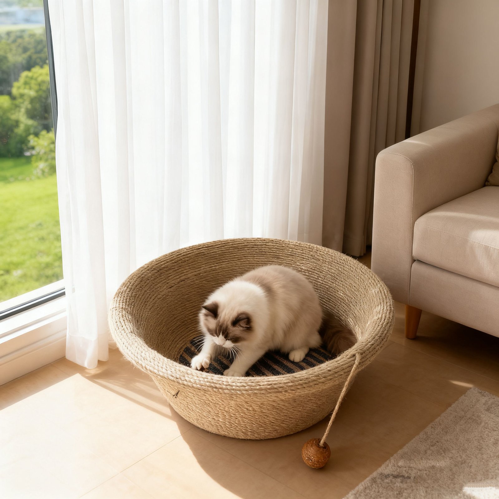 Woven with high-density sisal rope, the surface is coarse yet skin-friendly. It perfectly satisfies cats’ instinct to scratch, is highly wear-resistant, and prevents pilling.